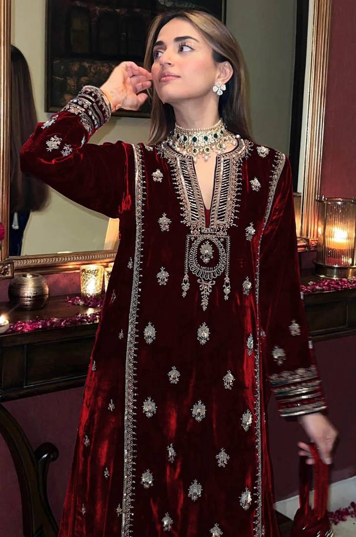 Product Name | Maroon Velvet Hand Embroidered Pakistani Salwar Suit | |