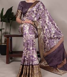 Raw beauty meets soft shine tasar silk blend saree with printed detail & viscose border