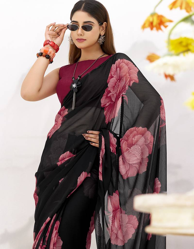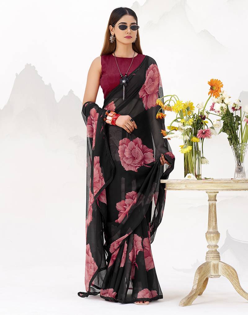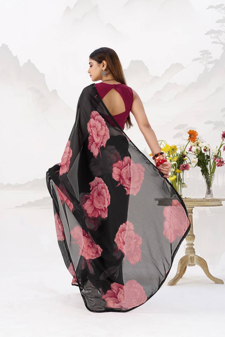 Product Name | Sheer Elegance Chiffon Floral Saree With Delicate Lace Border | |