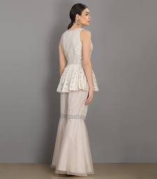 | Product Description | Ivory Embroidered Silk Peplum Top With Organza Gharara Paired With Organza Embroidered Dupatta. |