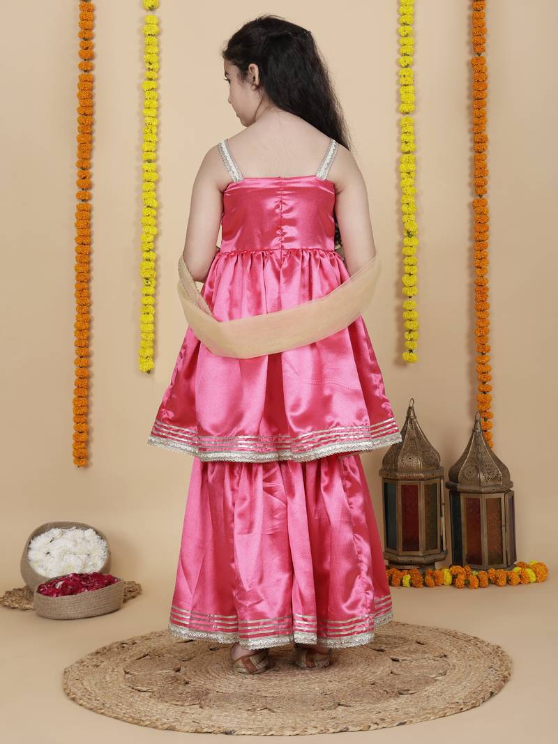 Product Description | Offers You To This Beautiful Girls Wedding Wear Kurta & Sharara Set With Dupatta, Your Little One Will Not Only Look Like A Traditional Beauty But Also Feel Like One, Radiating Confidence And Charm At Every Festive Gathering. Not Only Is This Outfit Stunning In Appearance, But It's Also Designed With The Comfort Of Your Child In Mind. The Use Of Pure Cotton Ensures Breathability, Making It Suitable For All Day Wear. |