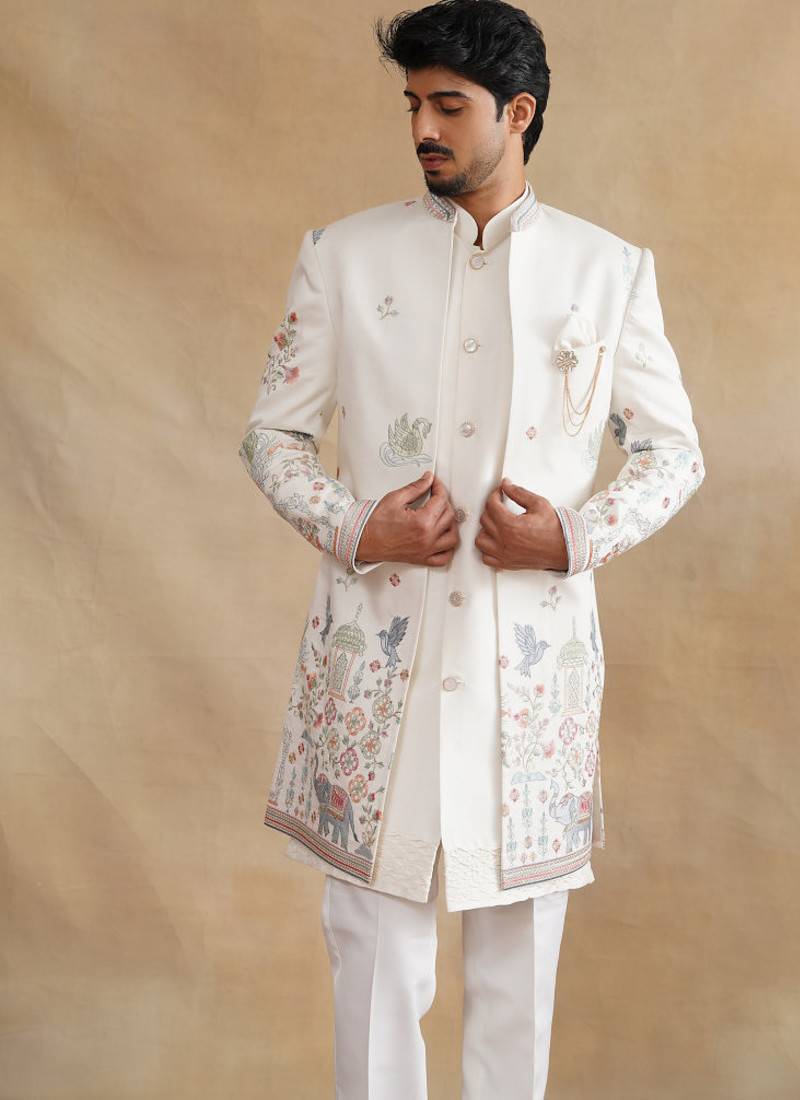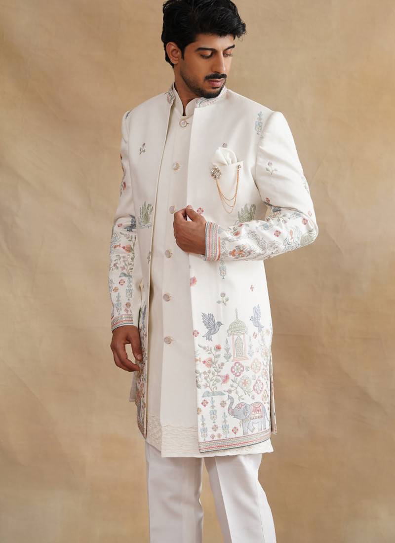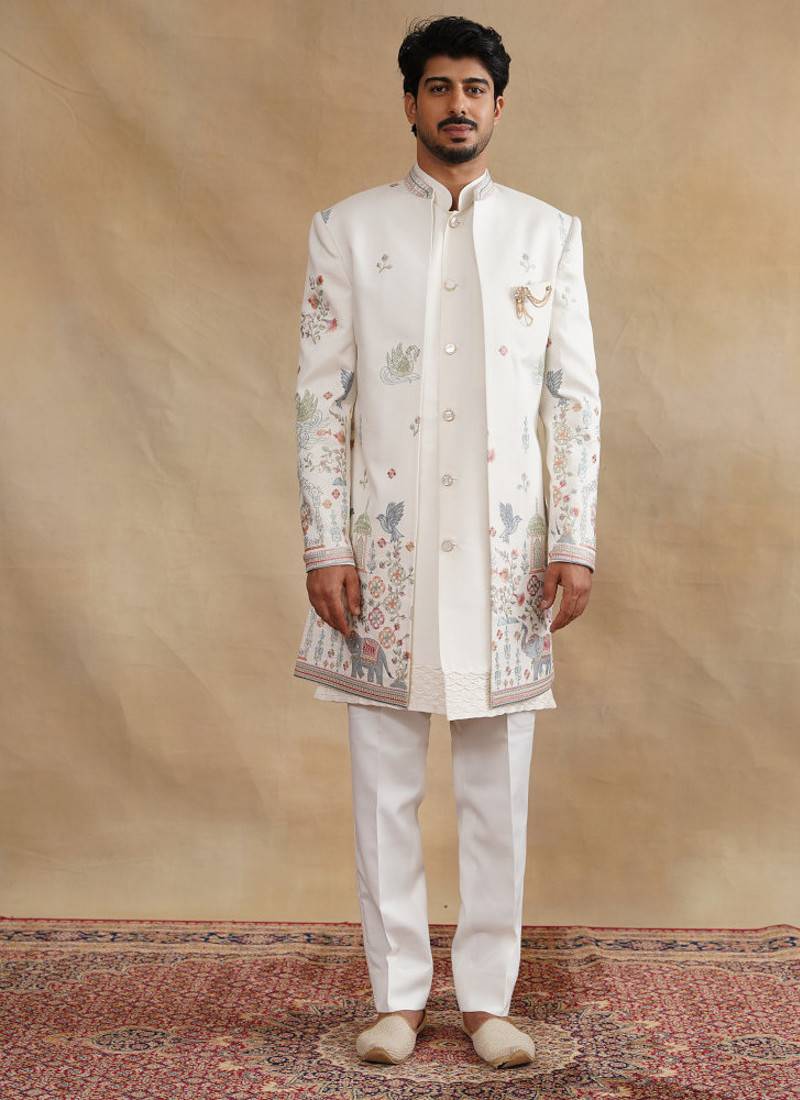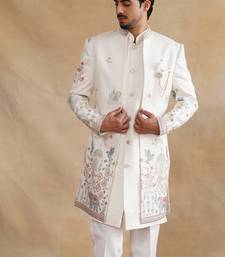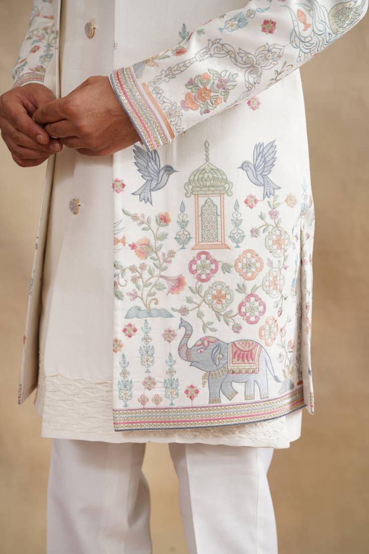 Ivory thread and zari embroidered indowestern