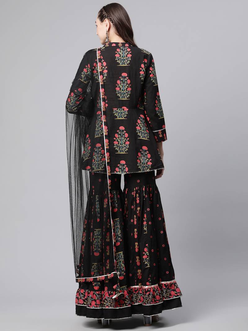 Product Description | Become The Ultimate Trend Setter And Make A Lot Of Heads Turn, As And When You Dress Up In Our Peplum Kurti And Sharara S Set. The Gorgeous Dress Has Buti Print All Over With Gota Laces And It Is Something That Will Make You Fall In Love With! Best Suited For Any Event Or Formal Gathering. |