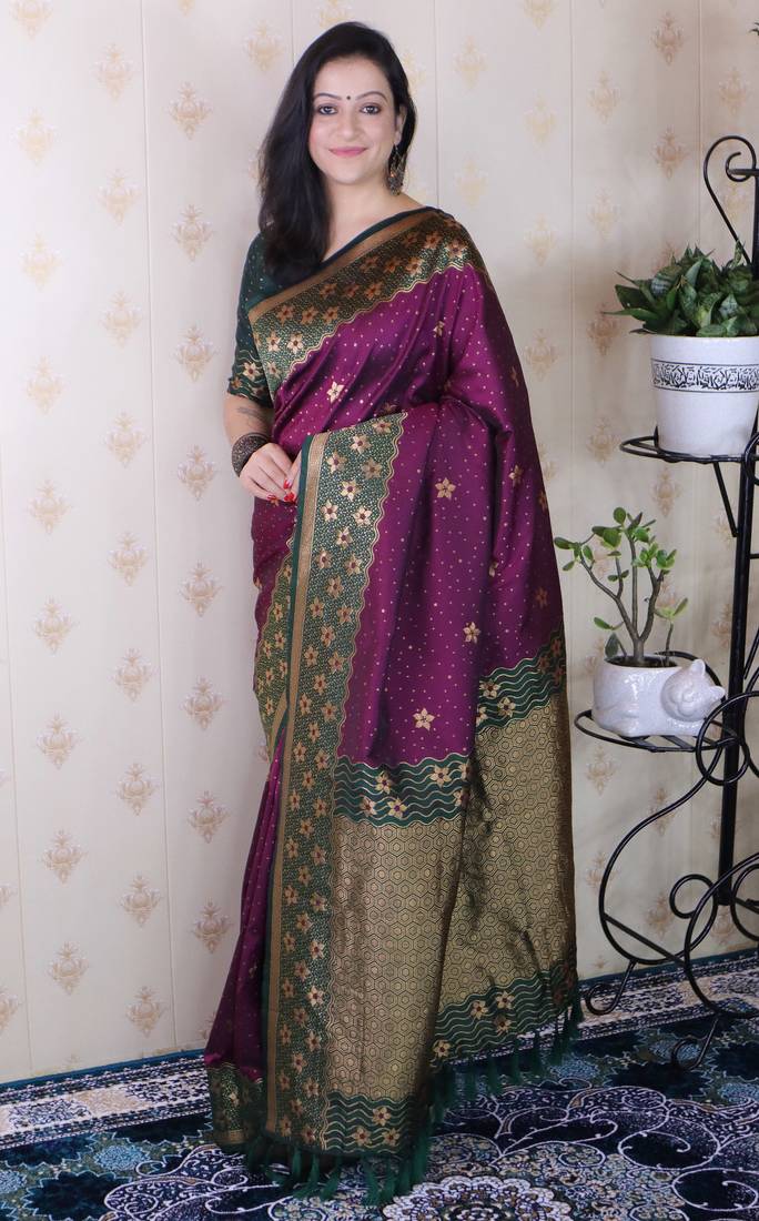 • | Saree | : | Color- Wine / Fabric- Silk Blend |