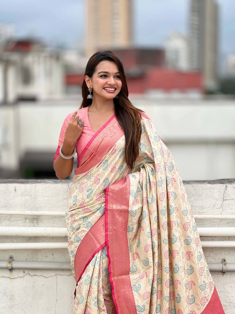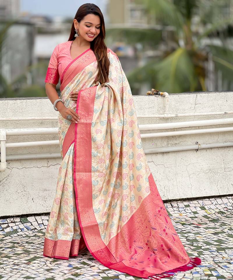 • | Saree | : | Color- Cream / Fabric- Silk Blend |