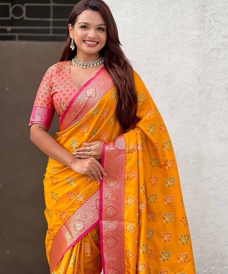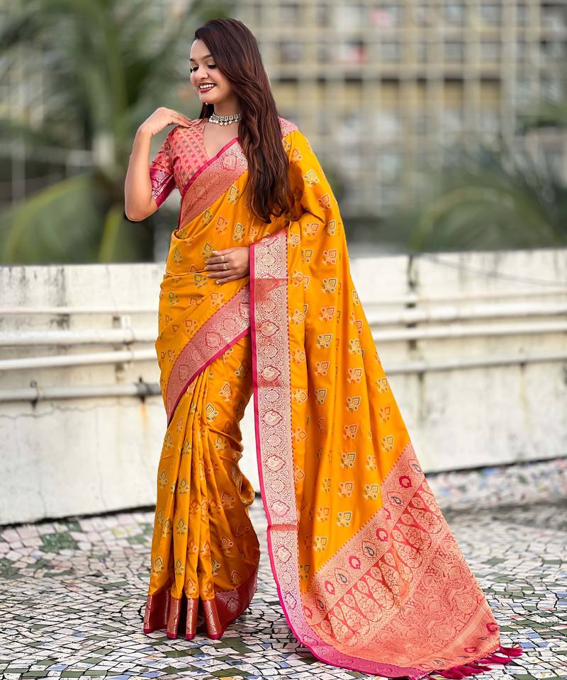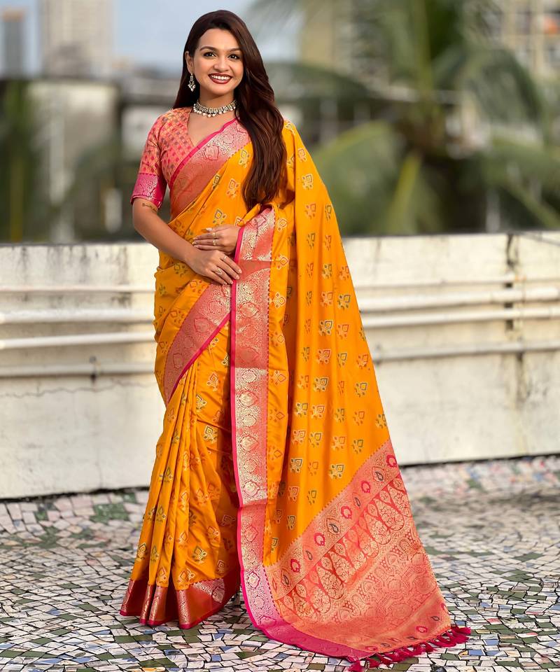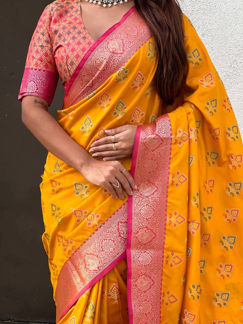 Product Name | Soft Silk Zari Woven Ikat Patola Saree With Contrast Weaves | |