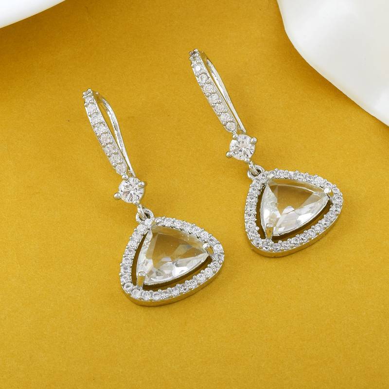 Product Description | Earring Length: 3.70 Cm X Width: 1.70 Cm | Metal: Brass With Good Quality Silver Plated | Color: Silver | Stone: American Diamond | Gross Weight: 6.00 Grams | Package Content: 1 Pair Of Earrings | Back Finding: Fishhook X Earring Style: Drop |