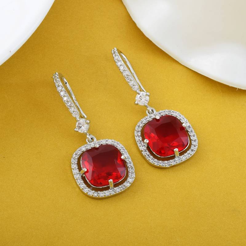 Product Description | Earring Length: 4.00 Cm X Width: 1.80 Cm | Metal: Brass With Good Quality Silver Plated | Color: Red | Stone: American Diamond | Gross Weight: 7.00 Grams | Package Content: 1 Pair Of Earrings | Back Finding: Fishhook X Earring Style: Drop |