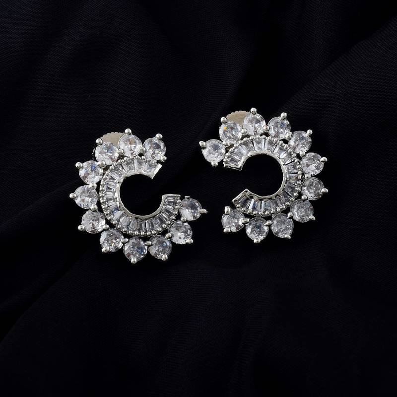 Product Description | Earring Length: 2.50 Cm X Width: 2.50 Cm | Metal: Brass With Good Quality Silver Plated | Color: Silver | Stone: American Diamond | Gross Weight: 8.00 Grams | Package Content: 1 Pair Of Earrings | Back Finding: Post With Friction Back X Earring Style: Hoop |