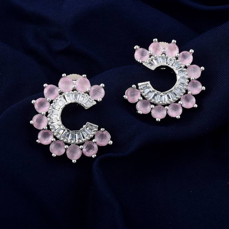 Product Description | Earring Length: 2.50 Cm X Width: 2.50 Cm | Metal: Brass With Good Quality Silver Plated | Color: Pink | Stone: American Diamond | Gross Weight: 8.00 Grams | Package Content: 1 Pair Of Earrings | Back Finding: Post With Friction Back X Earring Style: Hoop |