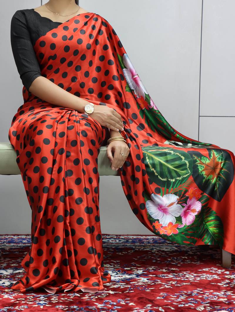 Product Name | Red Polka Dot Prints Heavy Japan Satin Saree With Unstitched Blouse | |