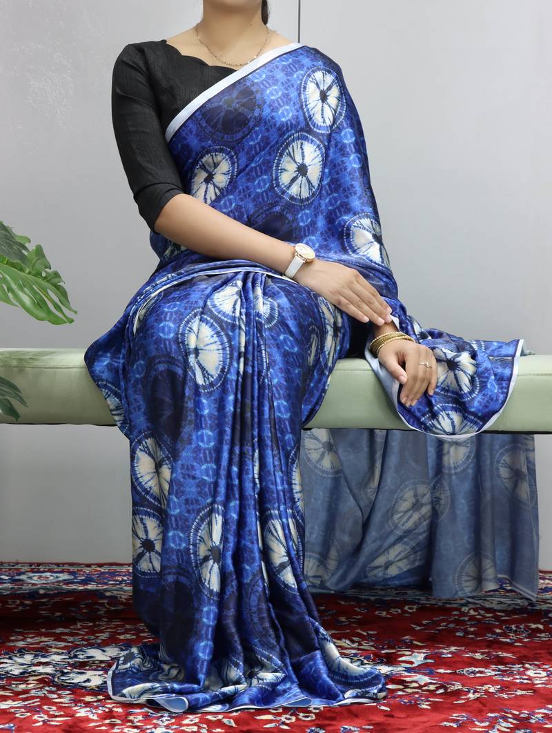 Product Name | Royal Blue Printed Heavy Japan Satin Saree With Unstitched Blouse | |