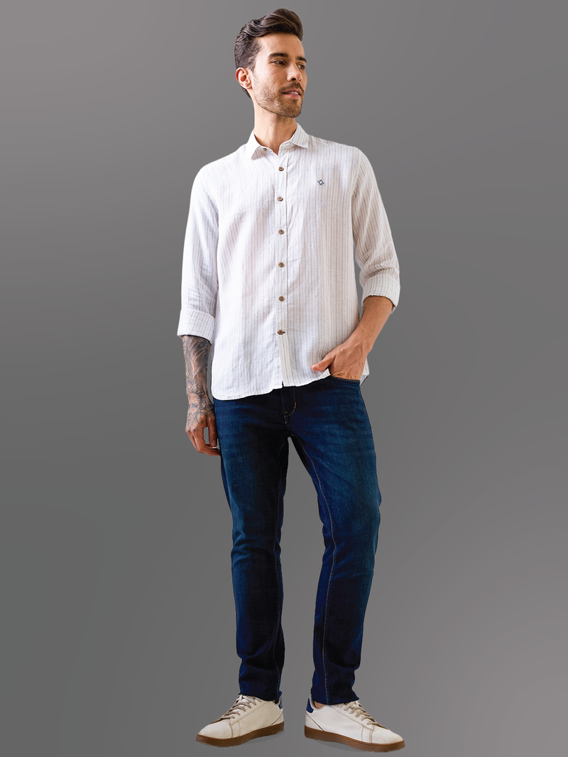 Product Description | This Striped White Linen Shirt For Men Is Crafted From 100% Pure Indian Linen, Naturally Breathable, Lightweight, And Ideal For Warmer Days. Cut In A Comfortable Regular Fit, It Features Fine Vertical Stripes That Add Subtle Texture And A Polished Look. |