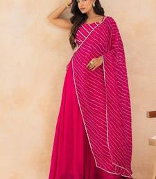 Product Description | Radiate Festive Elegance In This Vibrant Fuchsia Pink Leheriya Drape Cape Set, Crafted In Soft Georgette With Graceful Flow And Festive Flair. The Ensemble Features A Lace Embellished Choli, A Statement Draped Cape, And Flared Palazzo Pants, Blending Traditional Leheriya Artistry With Contemporary Indo Western Styling. Designed For Both Comfort And Sophistication, The Top And Bottom Come With Full Lining, Ensuring A Smooth Fit And Easy Wear. The Lace Detailing Adds A Touch Of Shimmer, Making This Look Perfect For Mehendi Events, Festive Evenings, And Modern Wedding Celebrations. Product Measurements: Blouse Length: 14.5" Palazzo Length: 44" Cape Length: 54" Fabric: Georgette (Lined Top & Bottom) |
