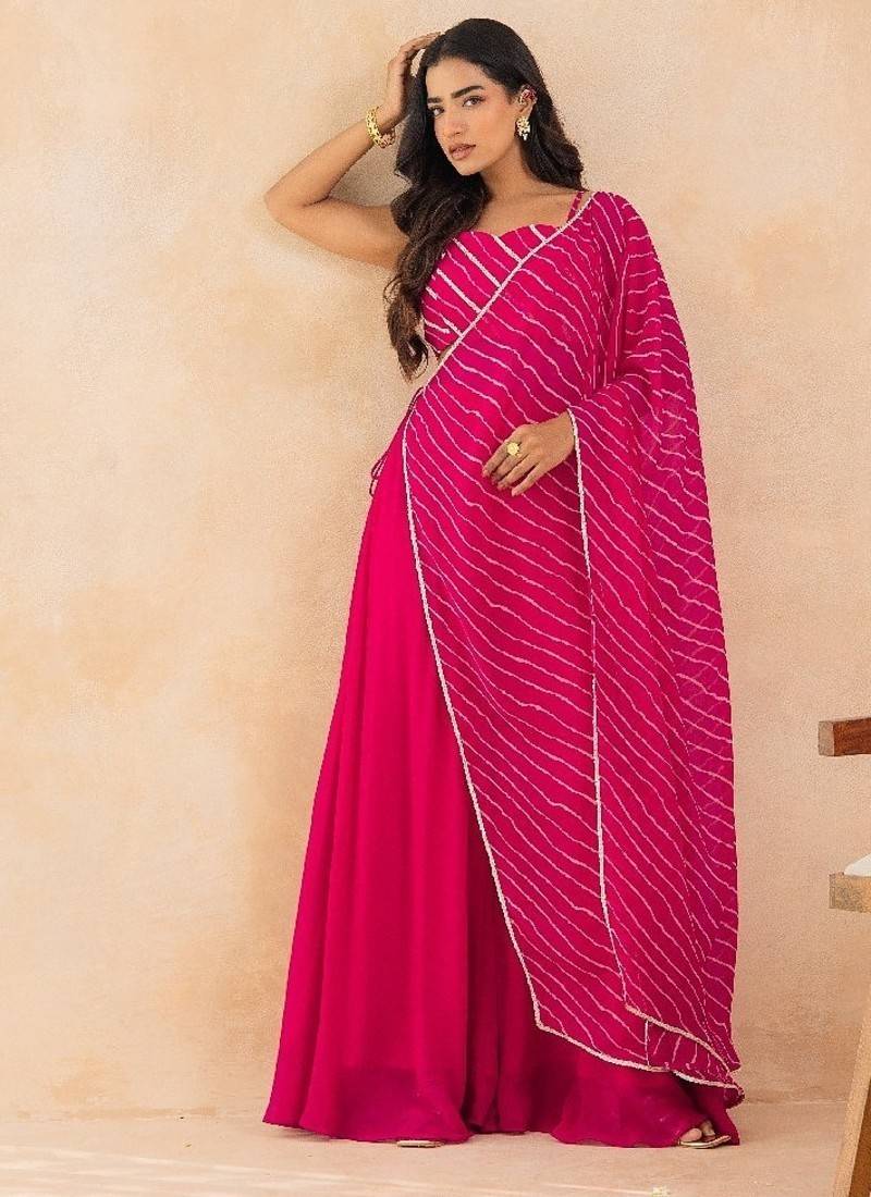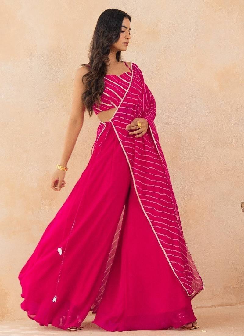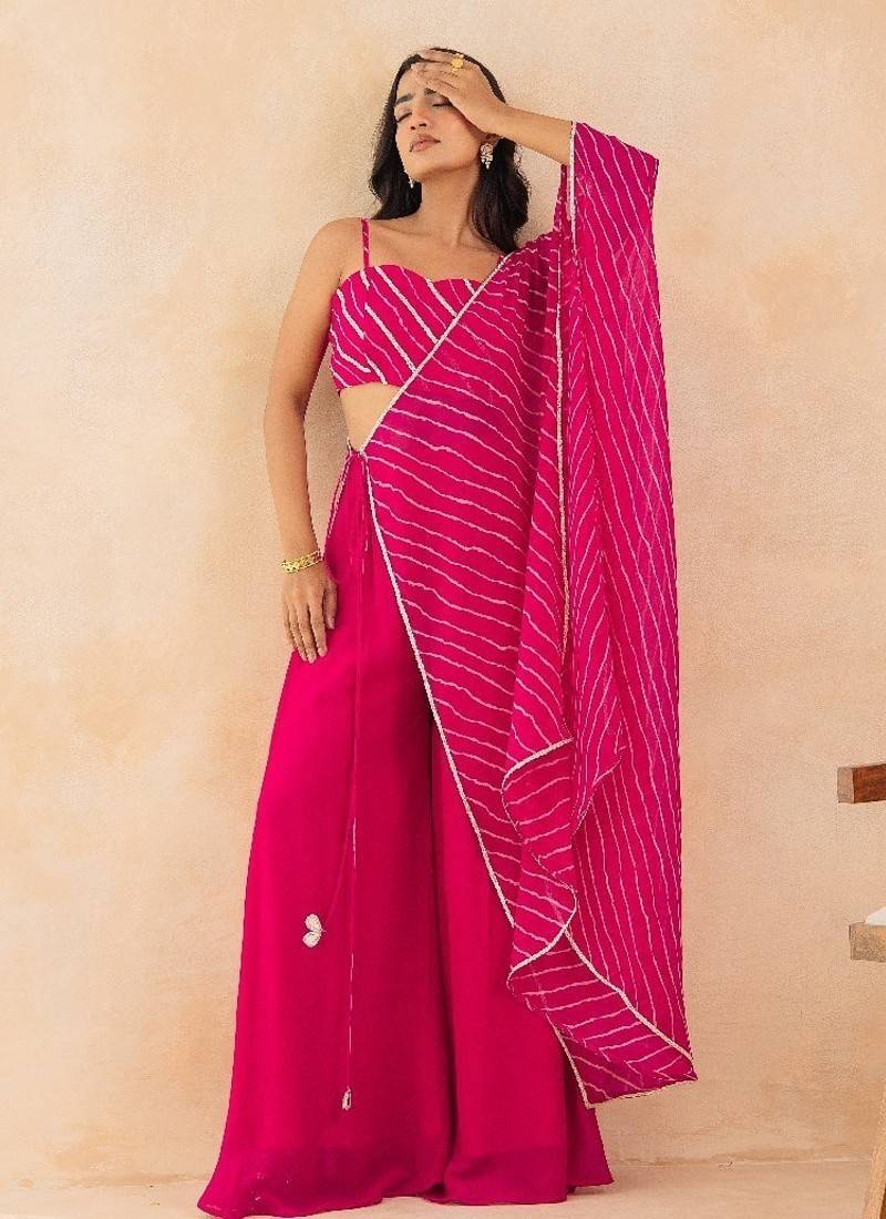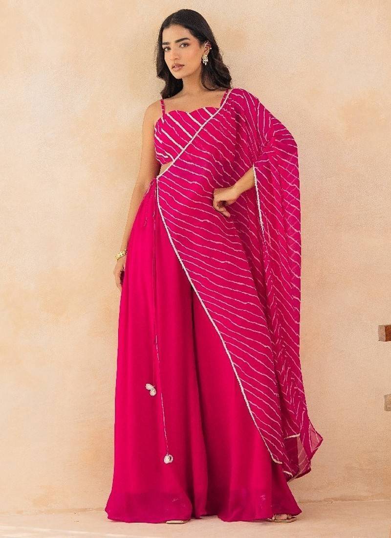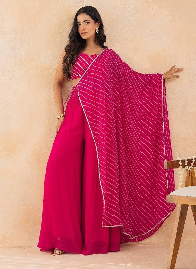 Product Name | Fuchsia Pink Leheriya Drape Cape Set With Palazzo & Choli | |