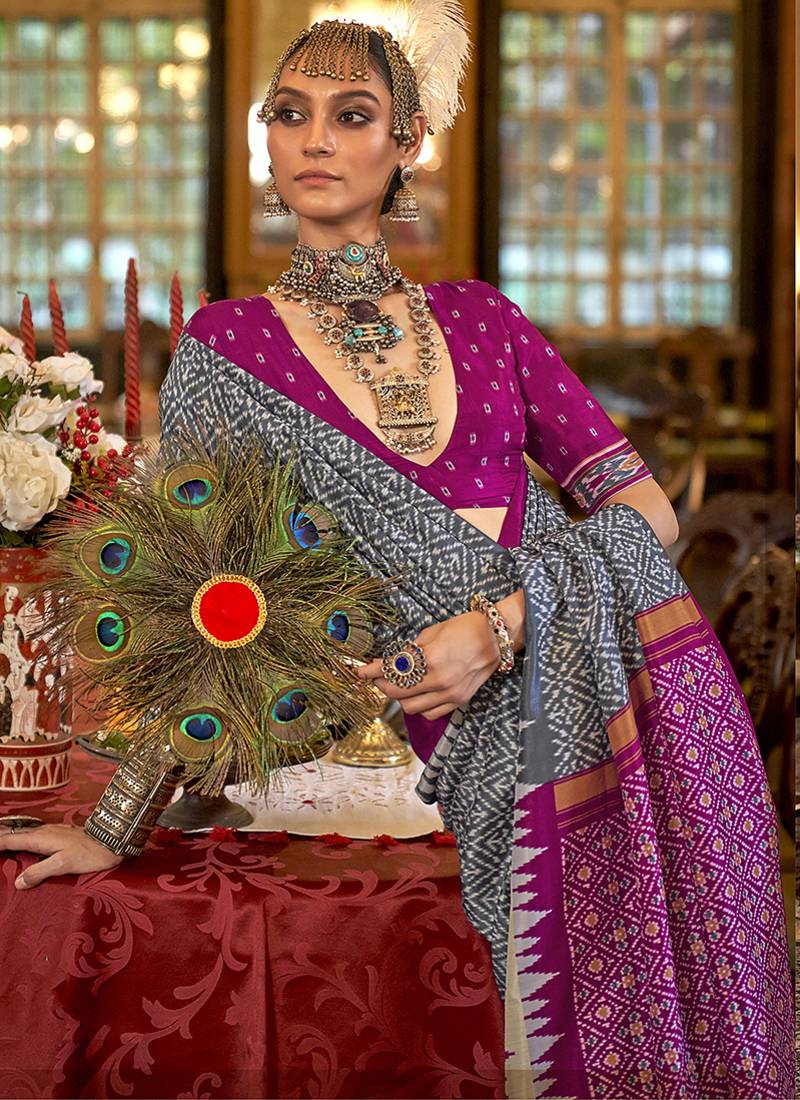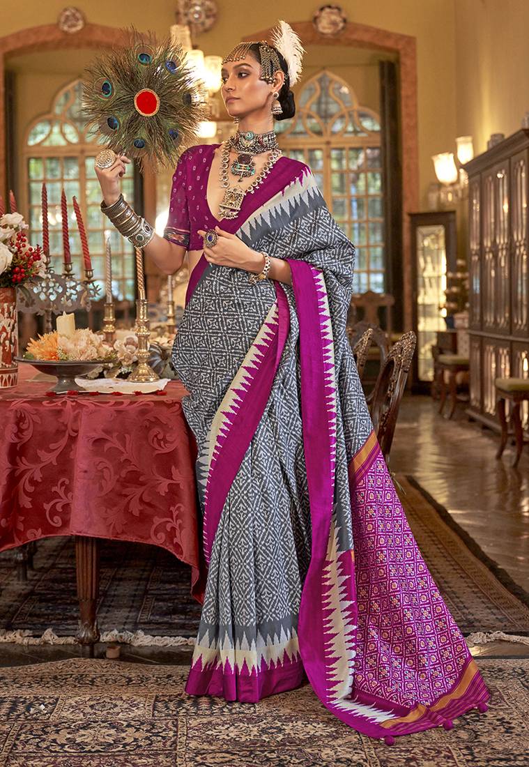 Product Name | Grey & Magenta Patola Design Zari Work Traditional Silk Blend Saree | |