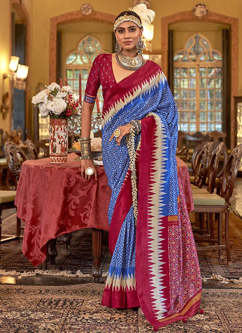 Product Name | Royal Blue & Rani Pink Patola Design Zari Work Traditional Silk Blend Saree | |
