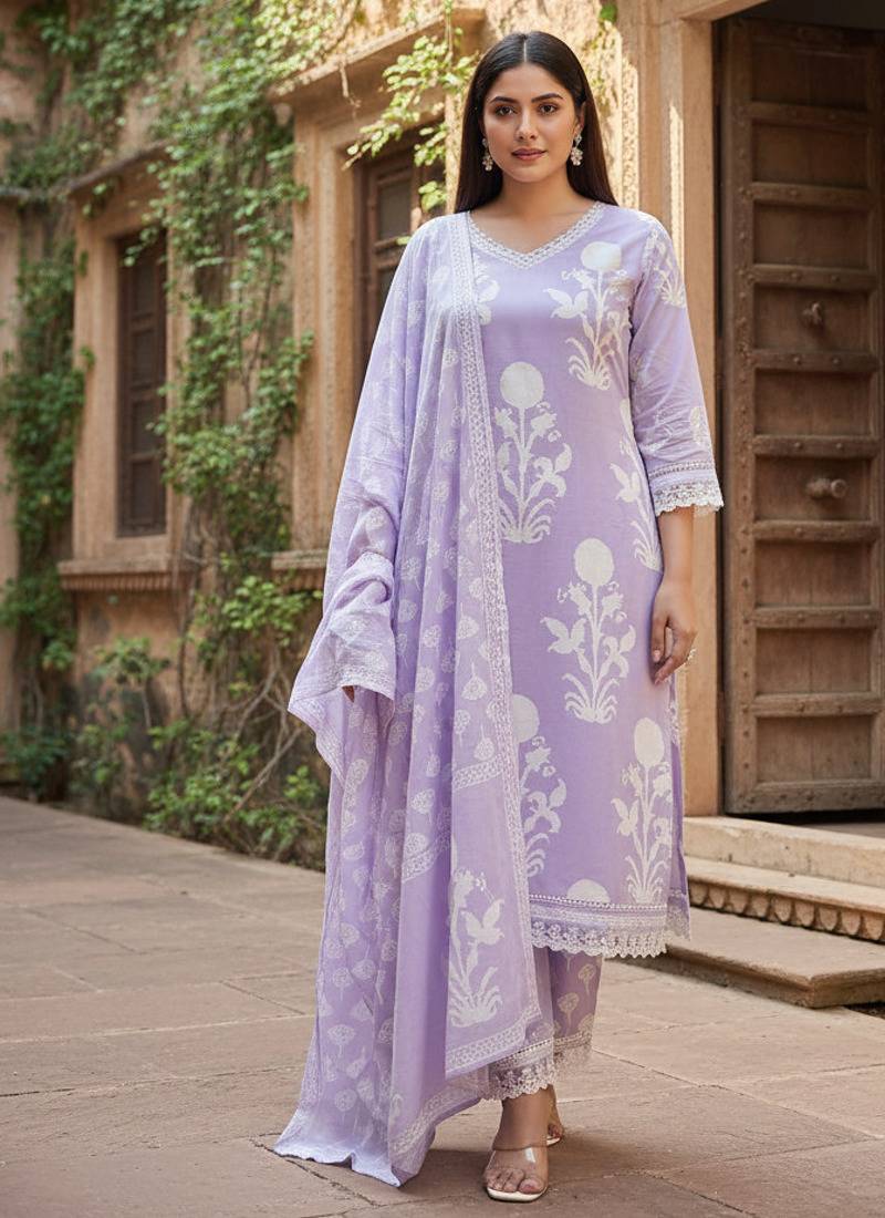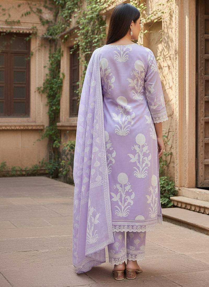| Product Name | Lavender White Embroidered Cotton Kurta Pant Dupatta Set For Women | |