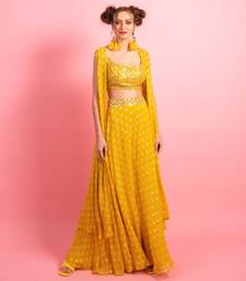 | Product Description | Tiny Icy Sparkles On A Tangy Lemon Yellow Base Will Help Bring The Heat Down This Summer. A Cute Embroidered Top Paired With Flowy Palazzo Pants And A Matching Cape Jacket. Both The Jacket And The Pants Have Sequins Highlighting On Top Of The Print. |
