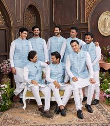 Product Name | Blue Digital Print On Art Silk 3pcs Jacket Set | |