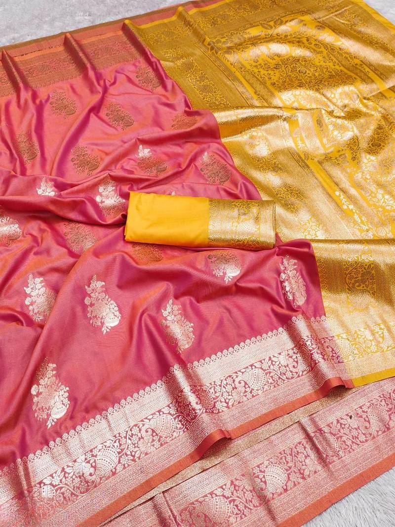 Pink art silk zari woven saree with blouse