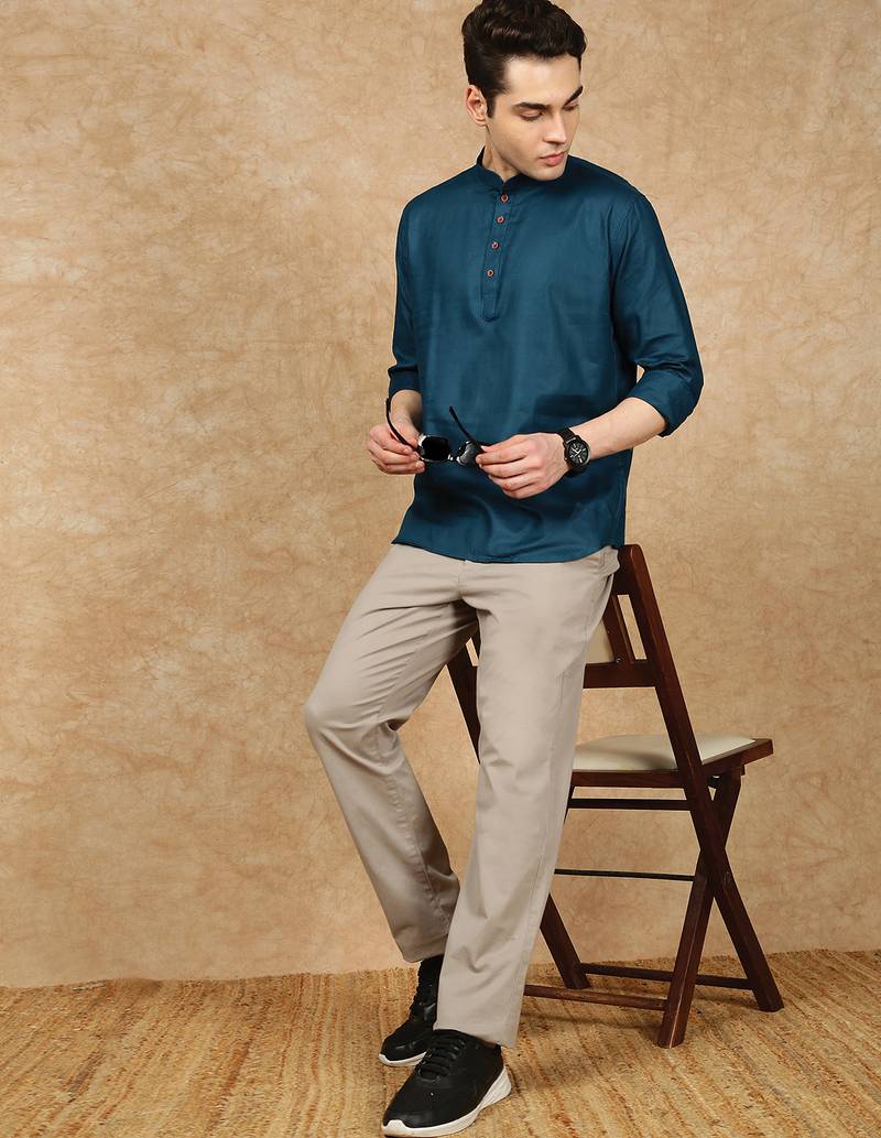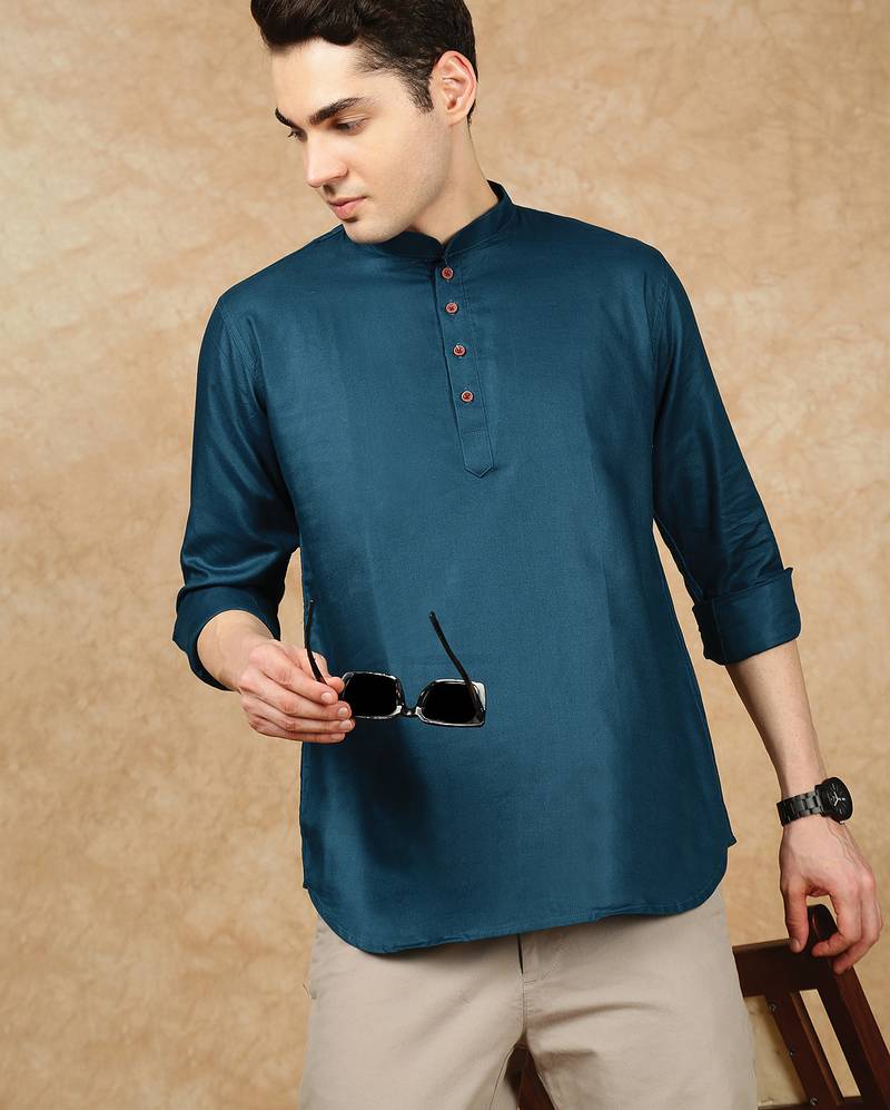 Product Name | Blue Rayon Sequins Short Kurta For Men | |