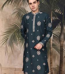 Product Name | Blue Silk Blend Thread Work Kurta For Men | |