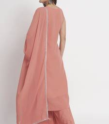Dusty orange embroidered georgette women's kurta,palazzo and dupatta set
