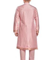 Pink hand block printed kurta with embroidery banarsi silk kurta payjama etnic wear :: festive wear