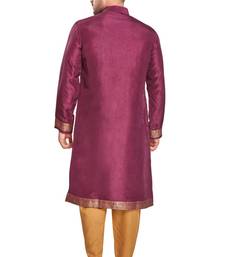 Purple hand block printed kurta with embroidery banarsi silk kurta payjama etnic wear :: festive wear