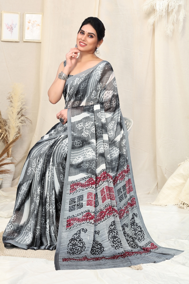 Product Name | White Printed Chiffon Saree With Blouse | |