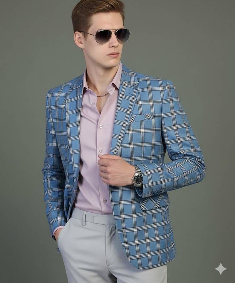 Product Description | Stylish Blue Checked Tweed Blazer With A Modern Fit And Classic Notched Lapel. Perfect For Adding A Touch Of Elegance To Your Formal Or Smart Casual Attire. |