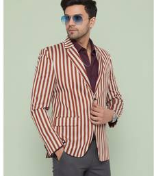 Product Description | Veera Paridhaan S/B Collar Two Button Round Striped Blazer For Men (Brown) Veera Paridhaan Is A Modern Men's Fashion Brand Known For Exceptional Craftsmanship And Contemporary Tailoring.Two Button Striped Blazer For Men Gives The Perfect Look For Formal To Casual Occasions With The High Quality Blended Cotton Poly Fabric Combined With Perfectly Crafted Stitching. This Blazer Will Enhance Your Elegance And Is Sure To Make Heads Turn. So, Go Ahead And Add These To Your Collection And Make Every Occasion A Memorable One. |